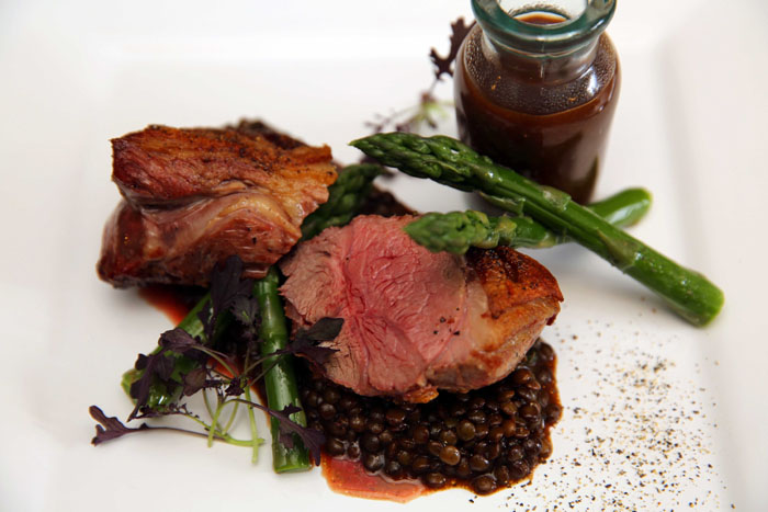 Crispy belly pork, black pudding, spring onion mash with a calvados and apple jus
